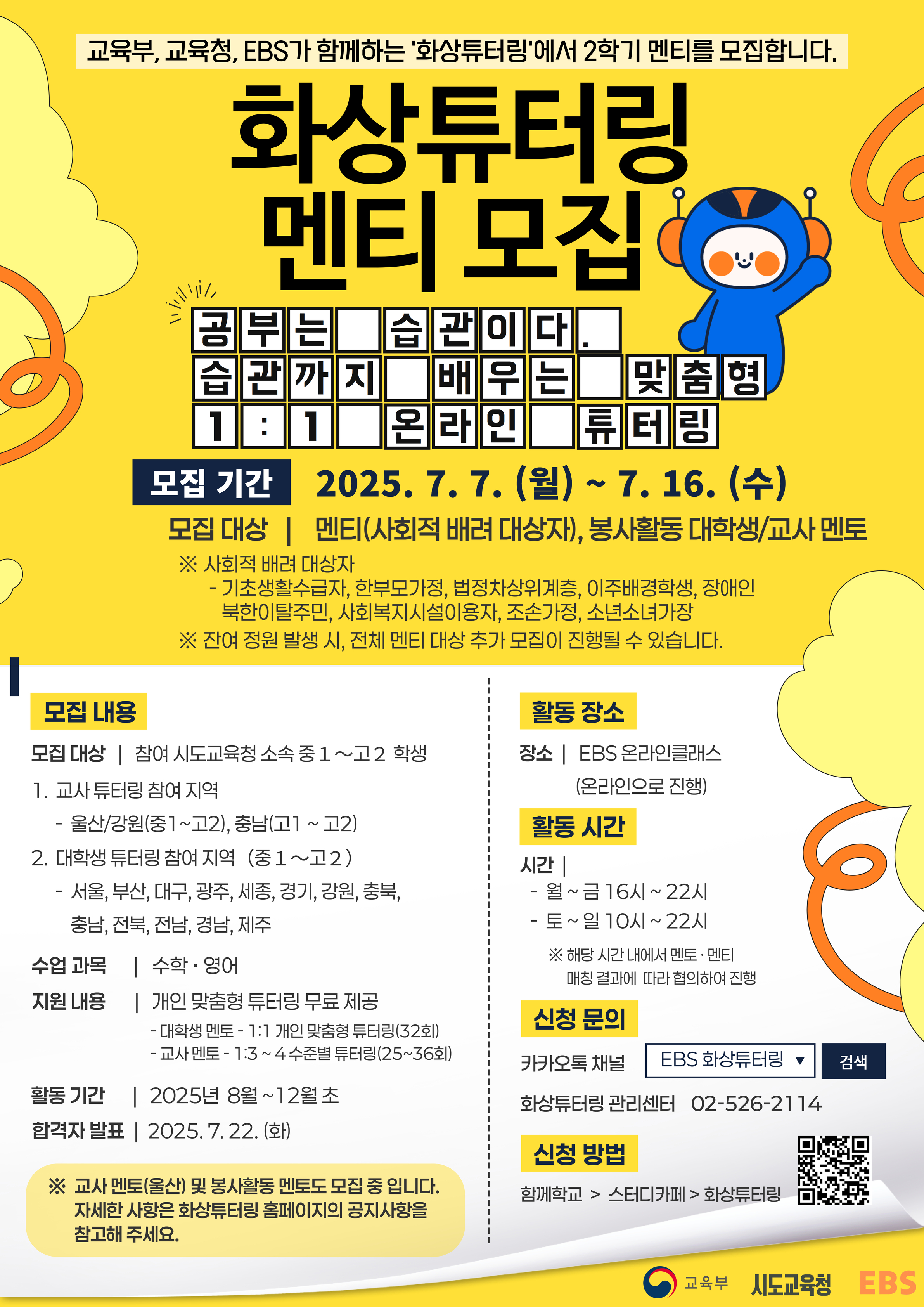 2025년 EBS 화상튜터링 사업 2학기 멘티학생 모집